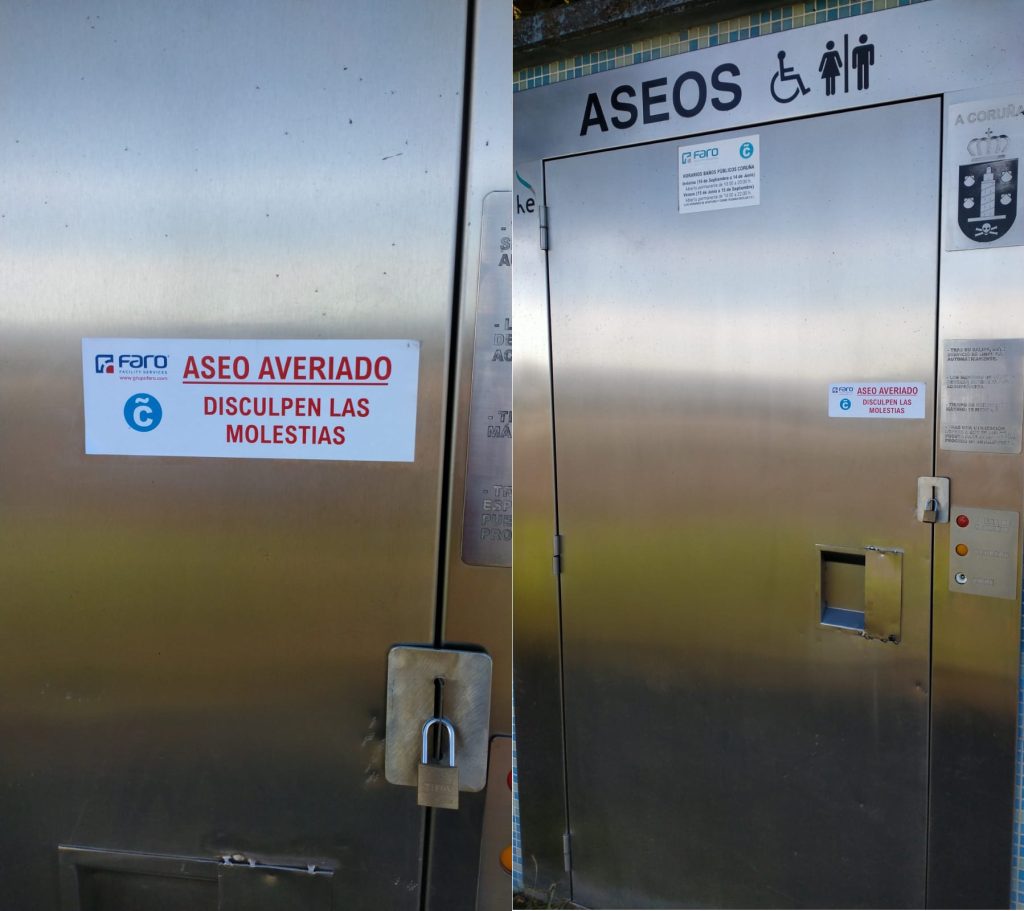 Pero el problema no se limita al ascensor. La zona, un mirador privilegiado y uno de los puntos con las vistas más espectaculares de la ciudad, es un claro ejemplo de desidia integral. Justo en el punto de partida del ascensor, donde los autobuses turísticos aparcan para que los visitantes disfruten del panorama, los viajeros se encuentran con unos baños públicos permanentemente fuera de servicio. La imagen que se proyecta es la de un espacio olvidado: turistas que llegan con expectativas y se topan con carteles de «cerrado» y instalaciones clausuradas.