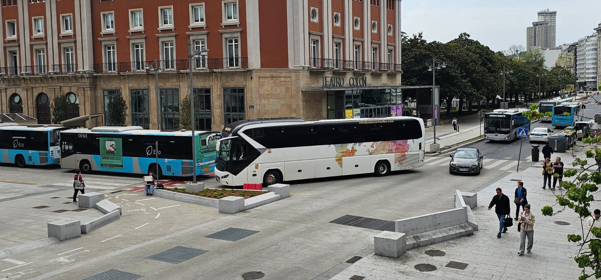 CSIF denuncia que el espacio habilitado junto al Teatro Colón es “notablemente más reducido” que el anterior en Entrexardins, lo que limita la capacidad de estacionamiento y maniobra. Según sus cálculos, solo de la parada de ALSA salen aproximadamente 15 autobuses por hora, una cifra que evidencia la alta intensidad de uso. A ello se suman las expediciones de otras empresas como Monbus o Arriva.