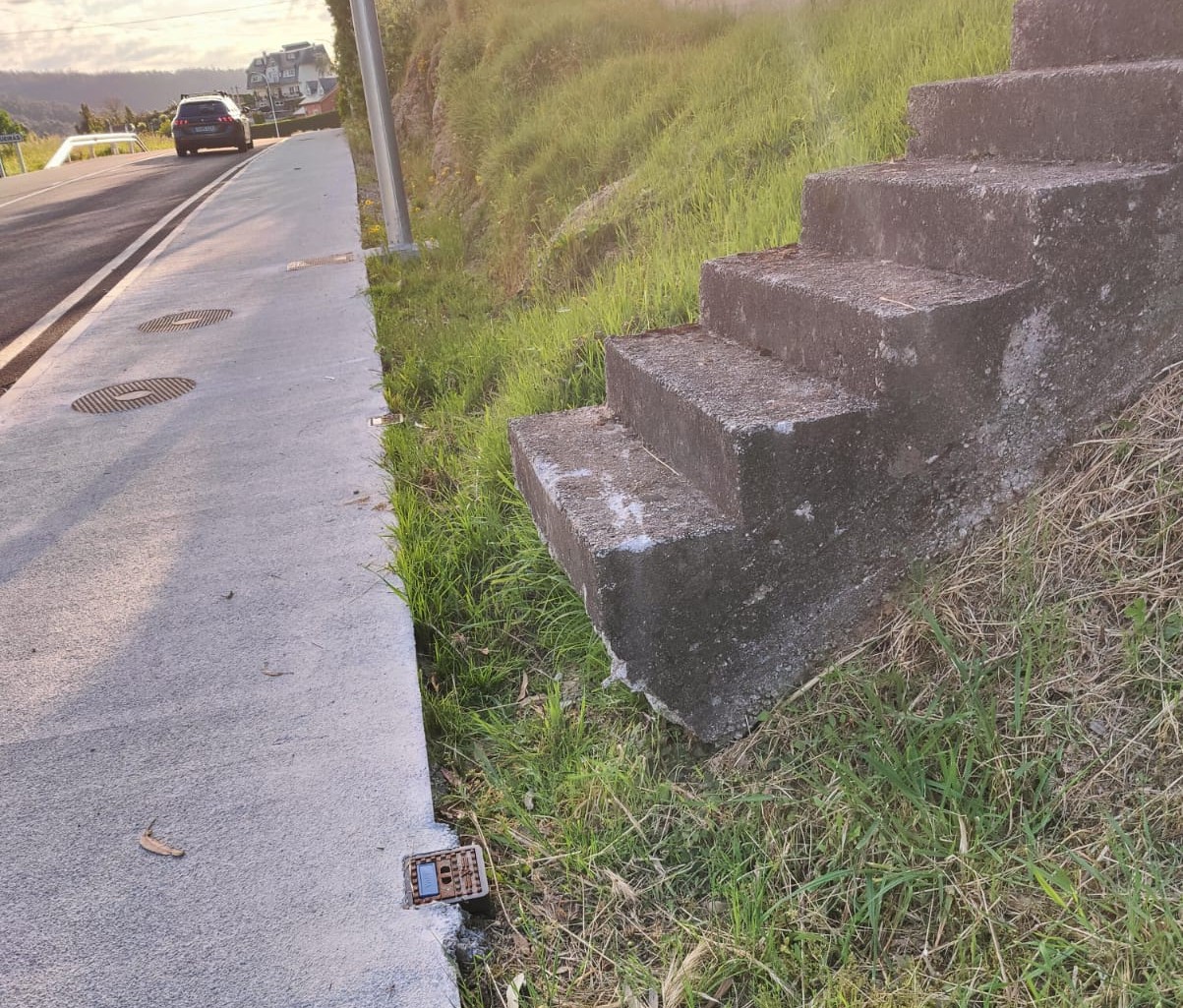 - Aceras invadidas por vegetación y falta de elementos básicos como bancos o barandillas en zonas con desniveles.