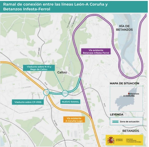 El estudio informativo sometido a información pública contempla la construcción de un ramal de aproximadamente 1,6 kilómetros que conectaría directamente la línea León-A Coruña con la Betanzos-Infesta-Ferrol.