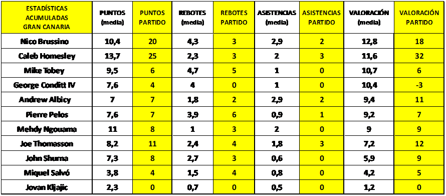 Los coruñeses aguantaron los dos primeros cuartos, pero en el tercero fueron víctimas del gran ataque canario y de su escasa intensidad defensiva, encajando 34 puntos en ese periodo. La estelar actuación de Homesley en la segunda mitad guió al equipo de JakaLakovic hacia una cómoda victoria, mientras que el Leyma Coruña sigue sin frenar su caída en la clasificación, a pesar del regreso del pívot Augusto Lima y los buenos minutos del francés Thomas Heurtel.
