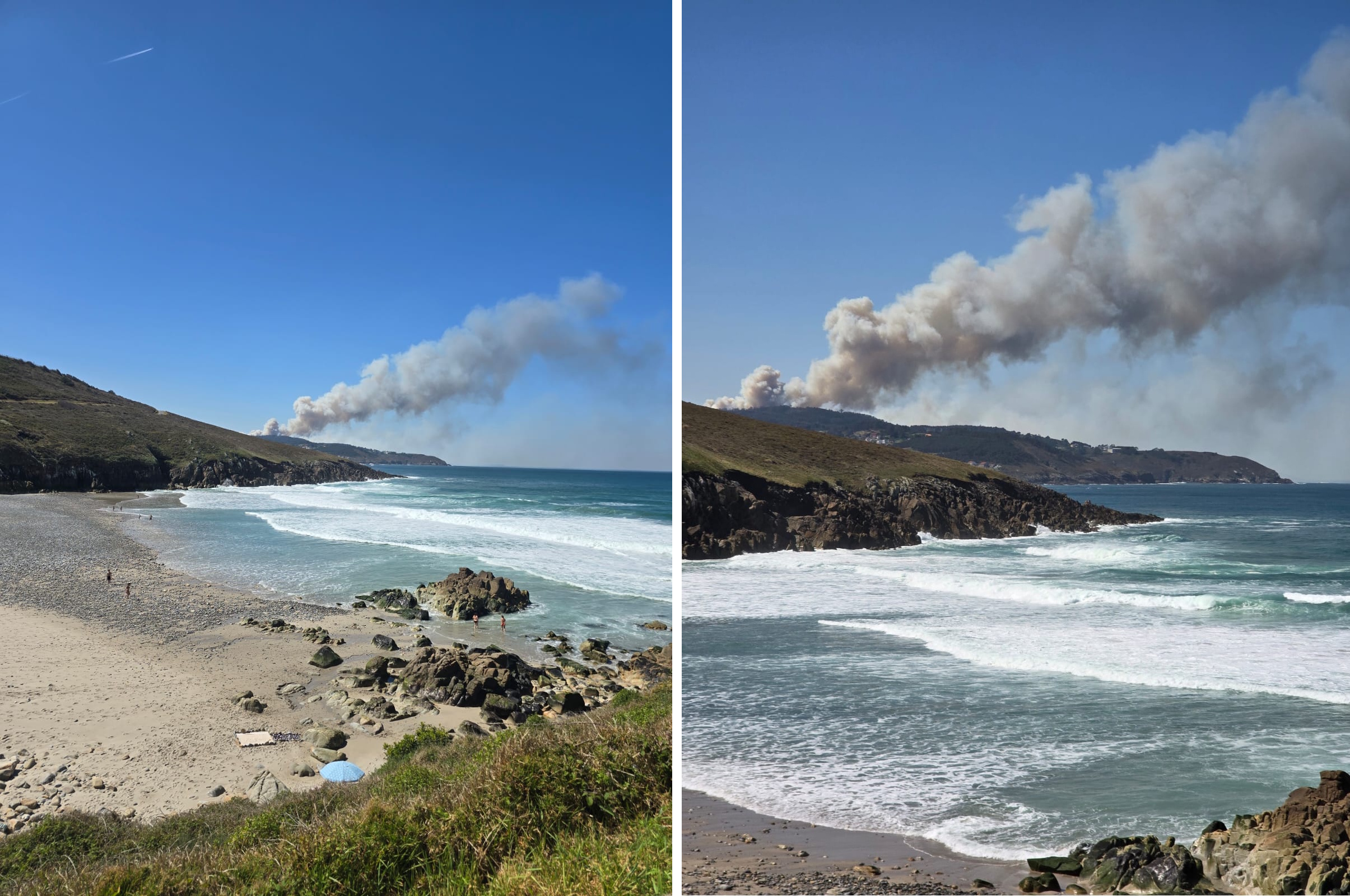 Visitantes de Valcovo han alertado tras divisar una densa columna de humo en dirección oeste, aparentemente hacia la zona de Caión. Las imágenes captadas por testigos muestran una columna de humo blanco elevándose sobre la línea del horizonte, lo que ha generado preocupación.