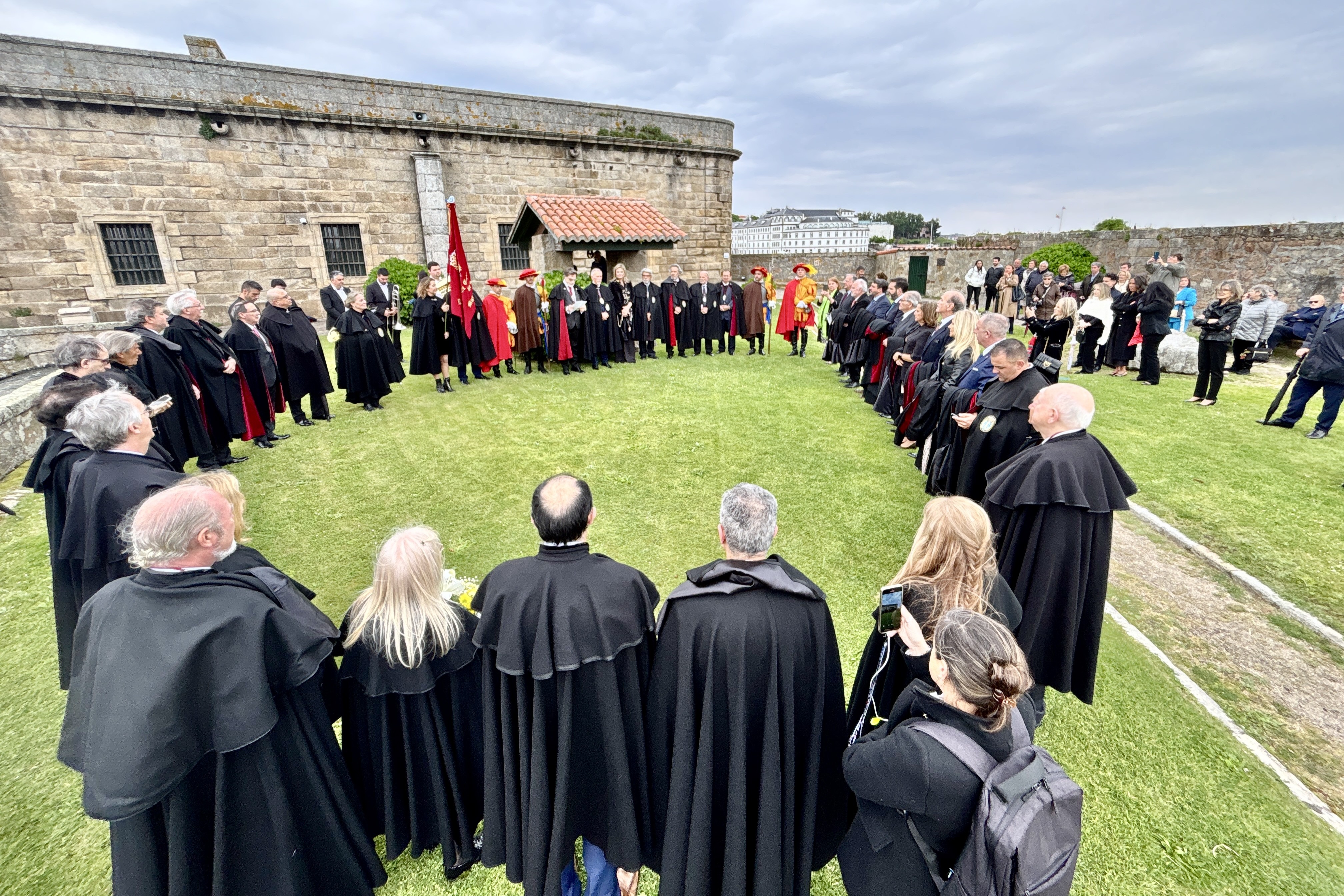 La jornada comenzó en el Castillo de San Antón, donde los caballeros rindieron tributo a los coruñeses que, liderados por María Pita, repelieron el ataque del almirante inglés Francis Drake. El acto, presidido por el maestre saliente, Jose Duarte, estuvo acompañado por el emotivo sonido del quinteto de viento y metal de la Asociación Celtas da Baña, y contó con la participación del caballero Rogelio Sánchez, quien destacó la importancia de mantener viva la memoria de aquella gesta histórica.