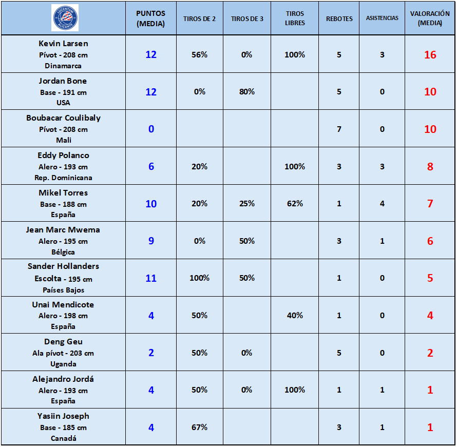 Le siguieron Mus Barro (13 puntos y 3 rebotes), Jacobo Díaz (8 puntos y 6 rebotes), Caio Pacheco (13 puntos y 3 asistencias), Jorgensen (17 puntos y 2 rebotes) y Cremo (8 puntos, 4 rebotes y 3 asistencias).
