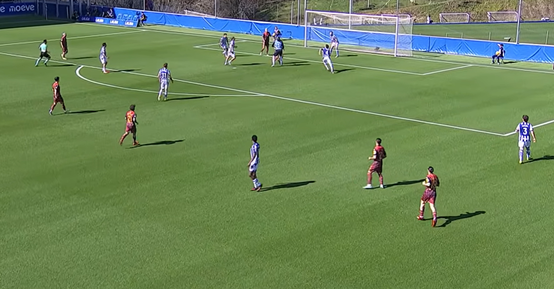 El golpe madrugador, lejos de hundir al filial txuri-urdin, despertó su mejor versión. Tras el 0-1, la Real Sociedad B tomó el control absoluto del partido, demostrando por qué compite con solvencia en la categoría. Dominaron la posesión y generaron varias ocasiones, encontrando la recompensa en el minuto 22, cuando Lander Astiazarán firmó el empate a uno. El dominio local se mantuvo durante el resto de la primera mitad y se prolongó en la segunda.